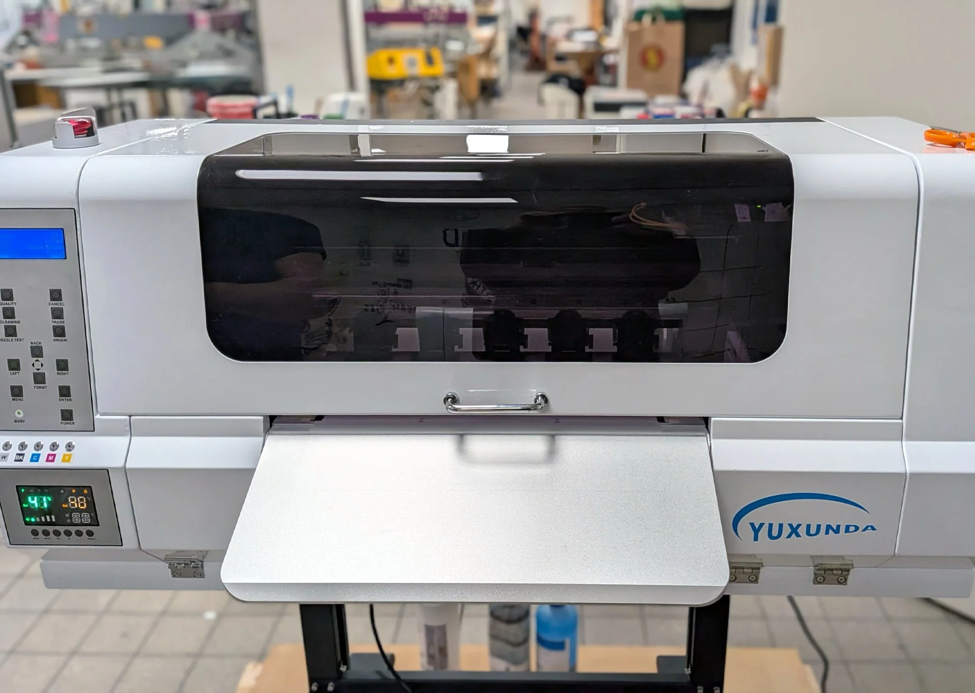 Vi har för närvarande 2st DTF-printers med hög produktionskapacitet.